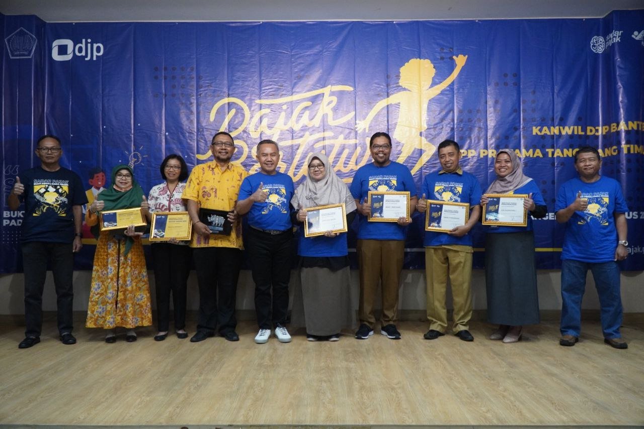 Kegiatan Pajak Bertutur di berbagai tempat di lingkungan Kanwil DJP Banten ditutup dengan foto bersama dan pembagian hadiah kepada peserta yang aktif dan memenangkan games dan kuis.