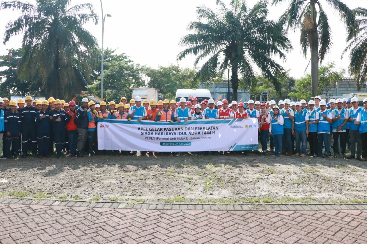 BISNISBANTEN.COM — Jelang Idul Adha 1444 Hijriyah, PT PLN (Persero) Unit Induk Distribusi (UID) Banten memastikan setiap personil dan peralatan siap siaga 24 jam guna menjaga keamanan dan keandalan pasokan listrik untuk memastikan kenyamanan ibadah umat muslim dalam melaksanakan kegiatan kurban dengan menggelar Apel Siaga Idul Adha 1444 Hijriah yang dilaksanakan di Halaman Parkir Mall Metropolis, Kota Tangerang, Provinsi Banten.