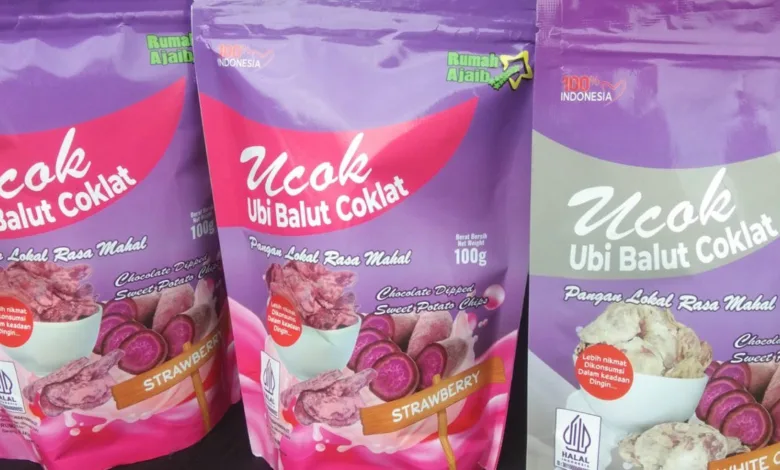 “Produknya sebenarnya ada sembilan, dari aneka peyek, aneka keripik, terus kue basah juga ada. Cuma yang best seller ini, yang sudah masuk retail modern, Ubi Balu Coklat,” ujar Dawiyah. UCOK sendiri merupakan singkatan dari Ubi Balu Coklat. Produk ini hadir dalam tiga varian rasa, yaitu white coklat, dark coklat, dan strawberry coklat. Konsepnya adalah keripik ubi ungu yang dibalut cokelat kompon, namun tetap mempertahankan tekstur renyahnya.