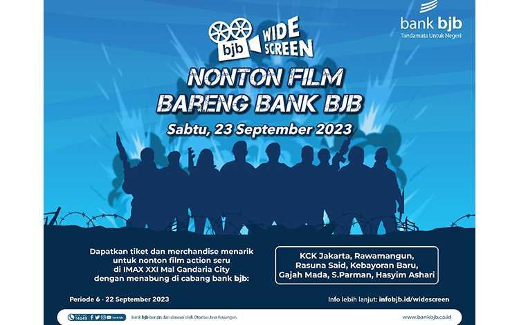 BISNISBANTEN.COM — Bank bjb kembali menghadirkan program bjb WideScreen, yakni program nonton bareng untuk nasabah Bank bjb. Kali ini, bjb WideScreen akan membagikan tiket nonton film Expendables 4 untuk para nasabah yang melakukan transaksi sesuai ketentuan. Film Expendables 4 merupakan salah satu film Hollywood yang dinanti-nanti oleh masyarakat Indonesia, karena untuk seri keempat ini dibintangi oleh aktor Indonesia Iko Uwais. Selain itu film ini dibintangi para aktor populer dari berbagai negara dan dunia seperti Jason Statham, 50 Cent, Megan Fox, Dolph Lundgren, Tony Jaa, dan Sylvester Stallone.