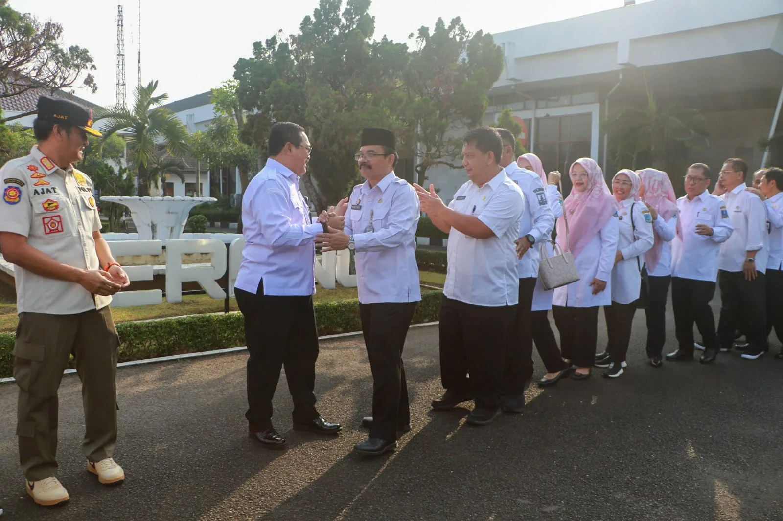 Usai apel gabungan, acara dilanjutkan halalbihalal para staf hingga pejabat eselon 2,3, dan pejabat eselon 2 antre bersalaman dengan Bupati Serang Ratu Tatu Chasanah yang didampingi Pj Sekda.(Nizar)