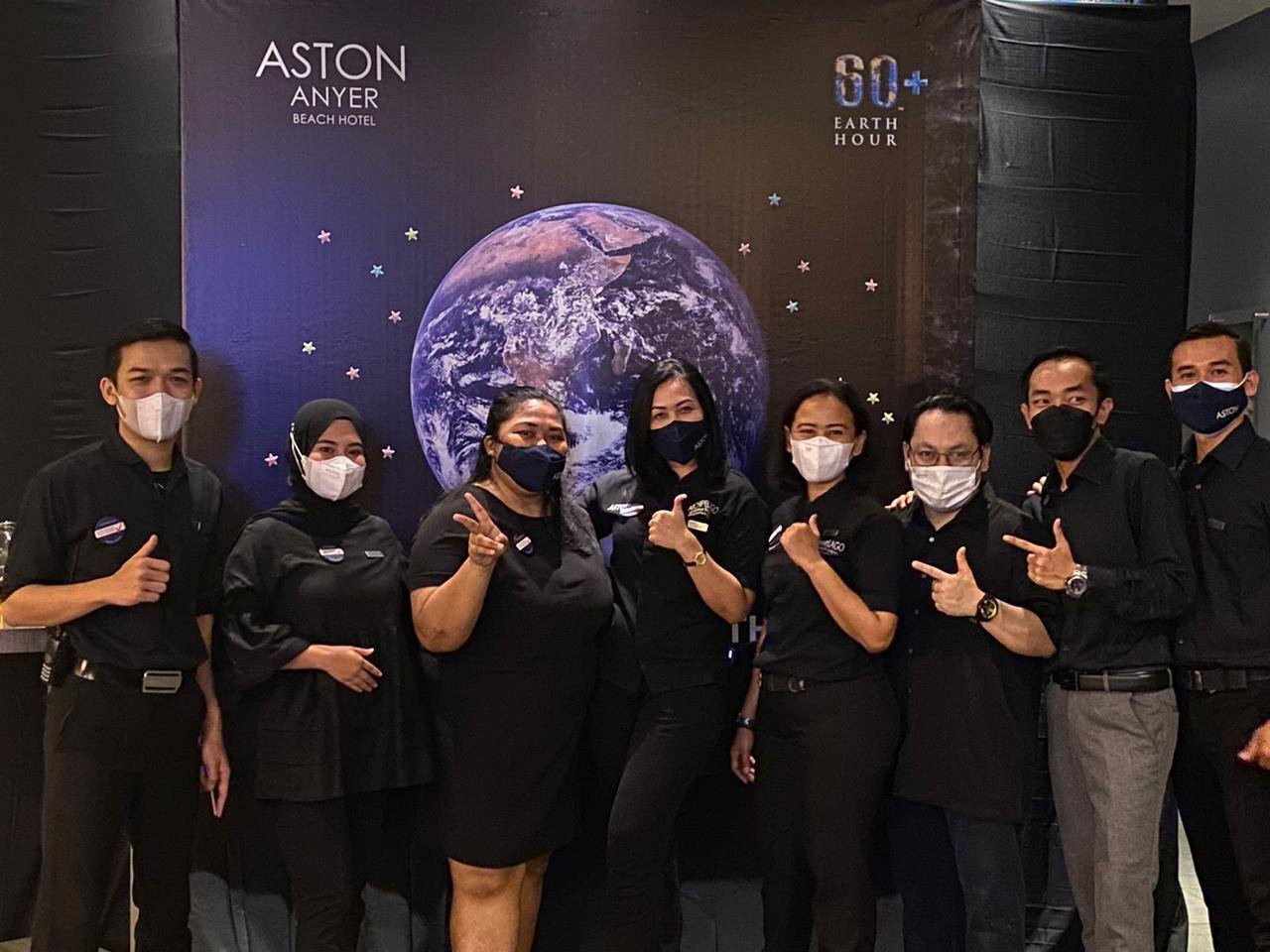 General Manager Cluster Aston Anyer Beach Hotel dan Aston Cilegon Boutique Hotel Doddy Faturahman mengungkapkan, Seperti tahun sebelumnya, pada  tahun ini tidak ketinggalan untuk tetap bergabung dalam even international earth hour. Peringatan ini ditandai dengan mematikan semua perlengkapan yang menggunakan listrik secara serempak malam minggu tersebut.