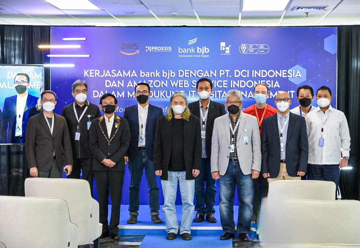 BISNISBANTEN.COM — PT Bank Pembangunan Daerah Jawa Barat dan Banten Tbk (Bank bjb) melakukan kerja sama dengan Amazon Web Service (AWS) dan PT DCI Indonesia, Tbk (DCI) dalam mendukung IT Digital Enablement “Modernisasi Infrastruktur Menuju Era Digital dengan ISO 20000 dan ISO 27001”. Acara ini turut dihadiri Direktur Utama bank bjb Yuddy Renaldi beserta jajaran, Presiden Direktur DCI Toto Sugiri beserta jajaran, Strategic Account Lead AWS Yos Vicenzo beserta jajaran.