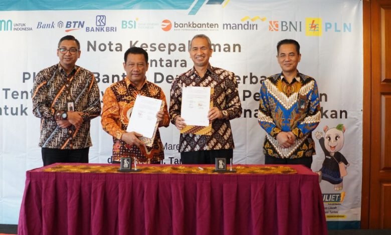 Penandatanganan Nota Kesepahaman diwakili oleh General Manager PT PLN Unit Induk Distribusi (UID) Banten, Abdul Muklis beserta jajarannya, Direktur Bisnis Bank Banten Rodi Judo Dahono, Kepala Divisi Dana Jasa dan Treasury Bank Banten Ferdy Ardian.