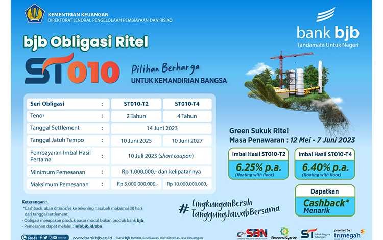 Bank bjb Ikut Tawarkan ST010, Ada Cashback Menarik bagi Investor