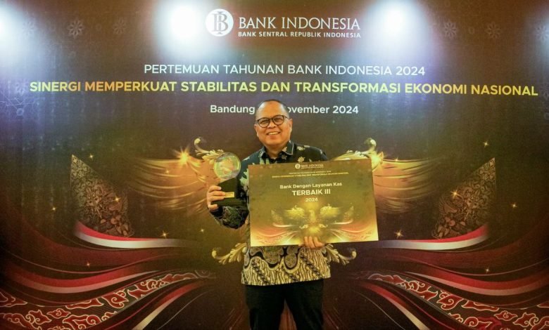 BISNISBANTEN.COM — Bank bjb berhasil meraih penghargaan sebagai Bank dengan Layanan Kas Terbaik 2024 pada acara Pertemuan Tahunan Bank Indonesia (PTBI) Provinsi Jawa Barat. Penghargaan ini diberikan oleh Bank Indonesia sebagai bentuk penghargaan atas dedikasi bank bjb dalam memberikan layanan terbaik kepada nasabah. Adapun penghargaan diterima oleh Direktur Kepatuhan bank bjb Cecep Trisna pada hari Jumat, 29 November 2024, di Trans Convention Center, Bandung.