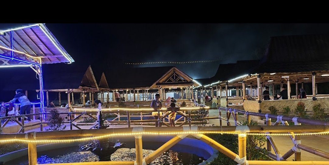 Dengan bangunan berupa saung-saung dari bambu, tempat makan yang tak jauh dari pom bensin Polda Banten ini bisa jadi rujukan untuk menjamu tamu saat makan siang dan sebagainya.