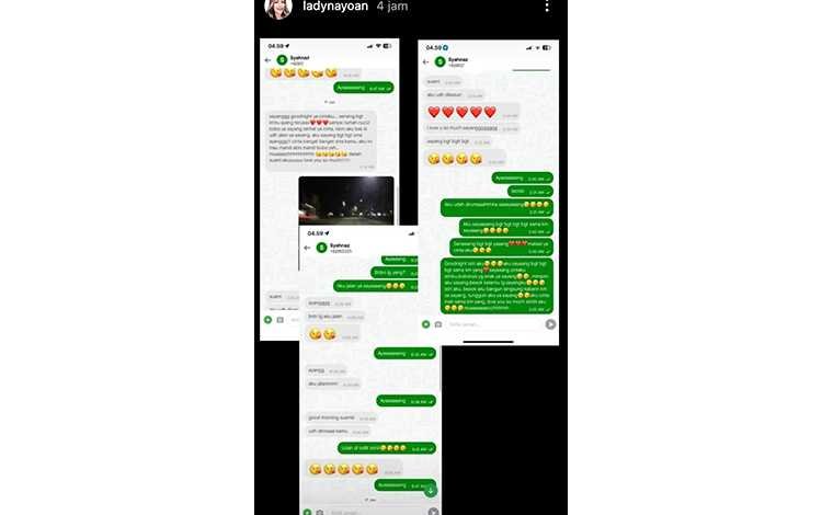 Isinya mulai dari mengirim foto banyak emoji hati terlihat dikirim dari akun dengan nama Syahnaz.