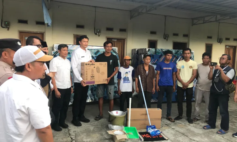 Bantuan diserahkan oleh Sekretaris Daerah (Sekda) Pemkab Serang Zaldi Dhuhana kepada perwakilan warga yang direlokasi, Selasa (22/10/2025).