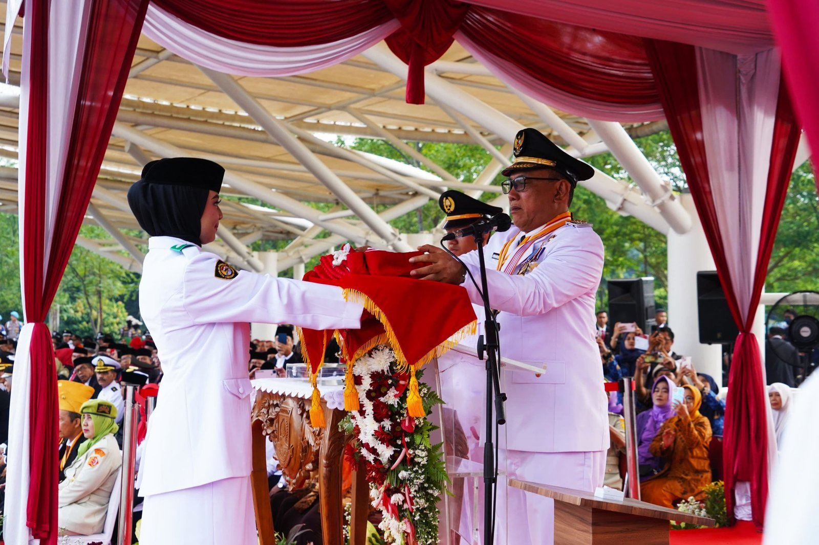 BISNISBANTEN.COM – Walikota Cilegon Helldy Agustian mengikuti upacara bendera dalam rangka memperingati Hari Ulang Tahun (HUT) Kemerdekaan Republik Indonesia (RI) ke-79 dengan khidmat di Alun-Alun Kota Cilegon, Sabtu 17 Agustus 2024. Pada kesempatan itu, Helldy bertindak sebagai inspektur upacara dengan dihadiri oleh Wakil Walikota Cilegon Sanuji Pentamarta, Sekretaris Daerah (Sekda) Kota Cilegon Maman Mauludin, Unsur Forum Komunikasi Pimpinan Daerah (Forkppimda), elemen masyarakat serta organisasi kemasyarakatan yang ada di Kota Cilegon.