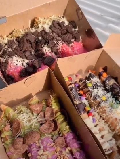 Sedangkan untuk sate pisang crispy dan pisang aroma juga memiliki varian toping yang beragam mulai dari original hingga toping lainnya.