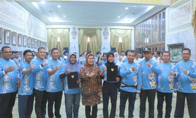 BISNISBANTEN.COM- Bupati Serang Ratu Tatu Chasanah melepas Atlet, official, pembina, pelatih, dan asisten pelatih yang akan berlaga pada Pekan Olahraga Nasional (PON) XXI Aceh-Sumut 2024 di Pendopo Bupati Serang, Kamis (22/8/2024). Selain memberi pesan bagi para atlet agar menyiapkan mental dan optimis menang, politisi Partai Golkar ini juga berjanji akan memberikan bonus khusus bagi atlet berprestasi dari kantong pribadi.