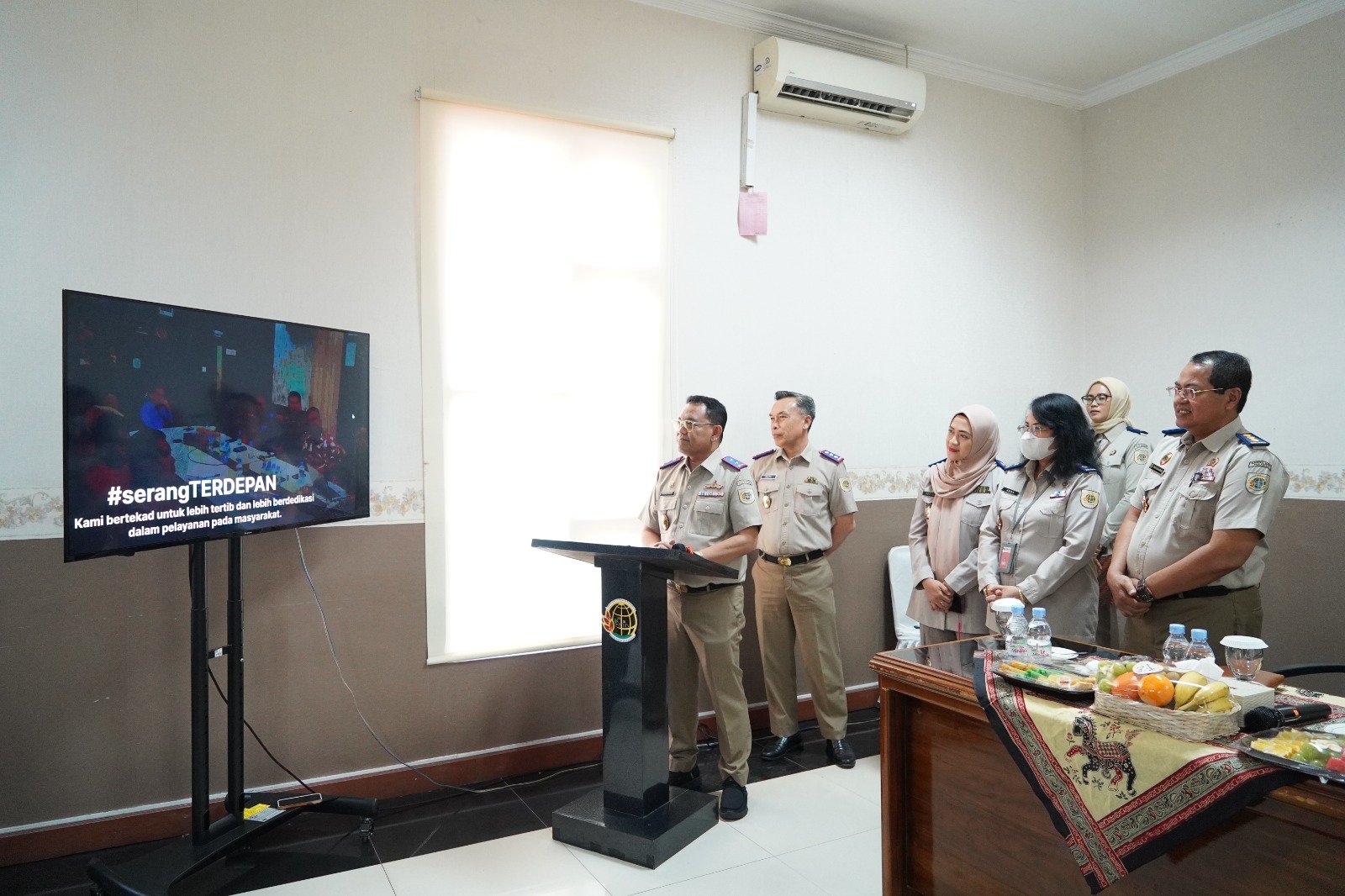 Pada kesempatan itu juga, Elfidian meluncurkan Tagline #SerangTerdepan yang memiliki makna, yakni pihaknya bertekad untuk lebih tertib dan penuh dedikasi memberikan pelayanan kepada masyarakat. Acara dilanjutkan dengan penyerahan Warkah dari Ketua Tim PTSL kepada Kepala Kantah secara simbolis dan penandatanganan berita acara. Kegiatan kemudian berlanjut dengan paparan rencana PTSL TA 2025 dan persiapan Kabupaten Serang Lengkap 2025 yang disampaikam oleh Kepala Seksi (Kasi) Survei dan Pemetaan Kantah Kabupaten Serang.