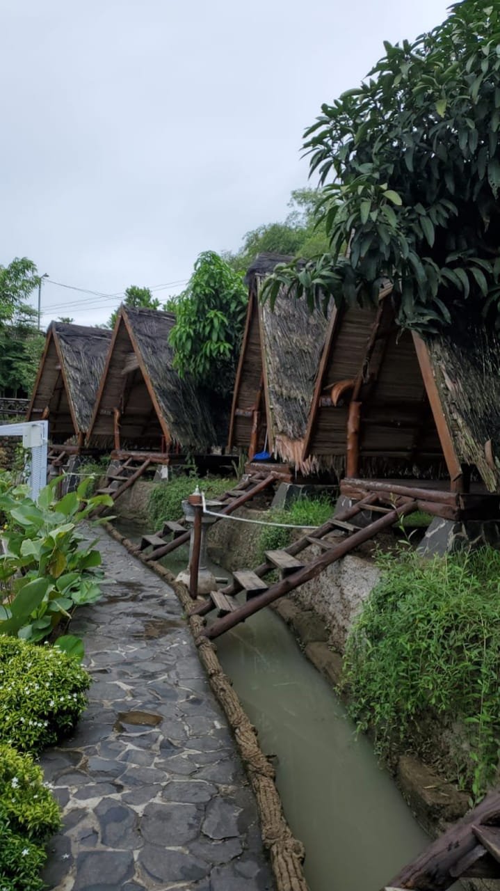 Konsep restonya lumayan unik, saung-saung berbentuk segitiga mirip lumbung padi yang berjejer. Saung dibuat dengan atap rumbia dan dinding bambu memberikan kesan natural.