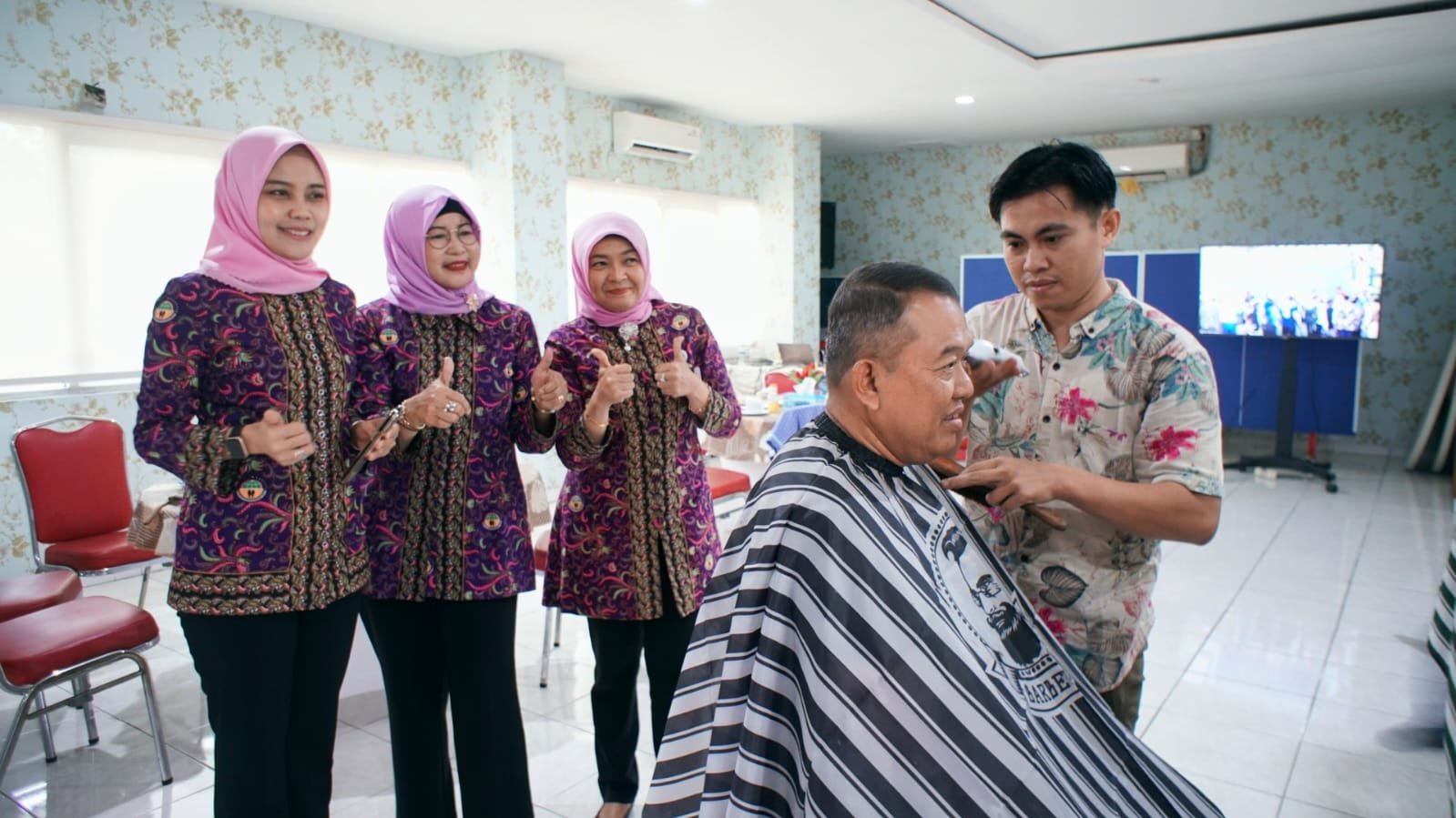 Ketua Ikawati BPN Banten Kusumiyati Rudi yang mengikuti acara secara daring dari Kantor Pertanahan Kota Tangerang mendukung terlaksananya kegiatan. Katanya, displin dimulai dari rambut yang rapi dan tidak akan terjadi apabila tidak didukung tukang cukur.