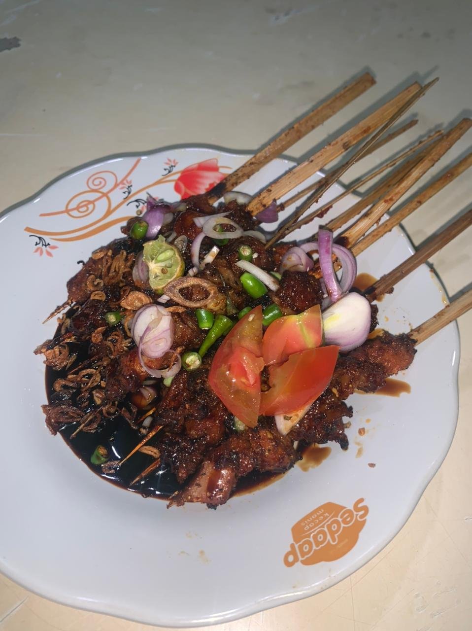 “Selain menu sate lainnya, sate bebek dan pepes blondo disini jadi andalannya, pepes blondo itu makanan tradisional zaman dulu ya dari sari minyak kelapa ditambah dengan teri bumbu rasanya pedas manis,” ungkapnya.