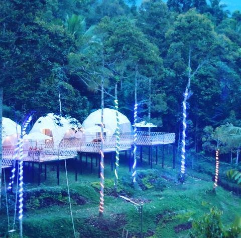 Saat memasuki kawasan area wisata ini terasa lebih menakjubkan karena disuguhkan pemandangan indah dan asri hijau, dikelilingi pohon durian. Tempatnya luas. Di sini bisa untuk menikmati wisata glamping, outbound, kafe, dan rekreasi bersama keluarga.