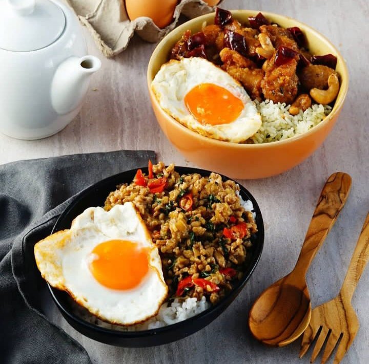 Selain itu, ada juga kung pao chicken rice, thai basil chicken, rendang ayam Malaysia, ayam woku Manado, dan lainnya.
