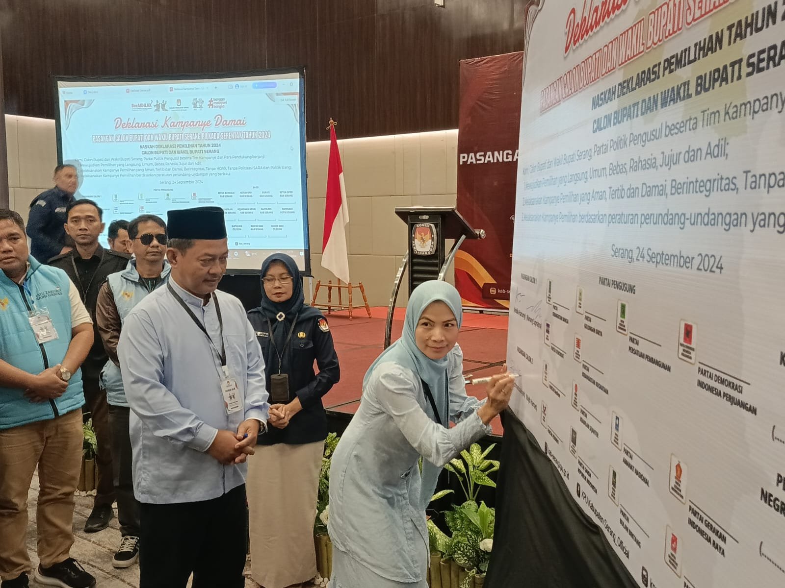 Terkait itu, Ketua KPU Kabupaten Serang M Nasehudin menjelaskan, digelarnya deklarasi damai sebagai pengingat dan membangun komitmen bersama seluruh Paslon yang akan mulai menggelar kampanye secara damai per 25 September sampai 23 November. Nasehudin berharap, jalannya kampanye nanti tidak sampai saling menyinggung, tidak mempersoalkan hal-hal yang berkaitan dengan Suku, Ras dan Agama, menjaga kondusif, tidak ada ujaran kebencian atau informasi hoax dan sebagainya.