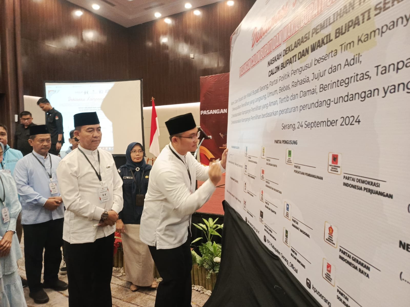 Deklarasi Damai Pilkada Kabupaten Serang, Andika-Nanang Ajak Adu Gagasan, Zakiyah-Najib Minta Bersikap Sportif