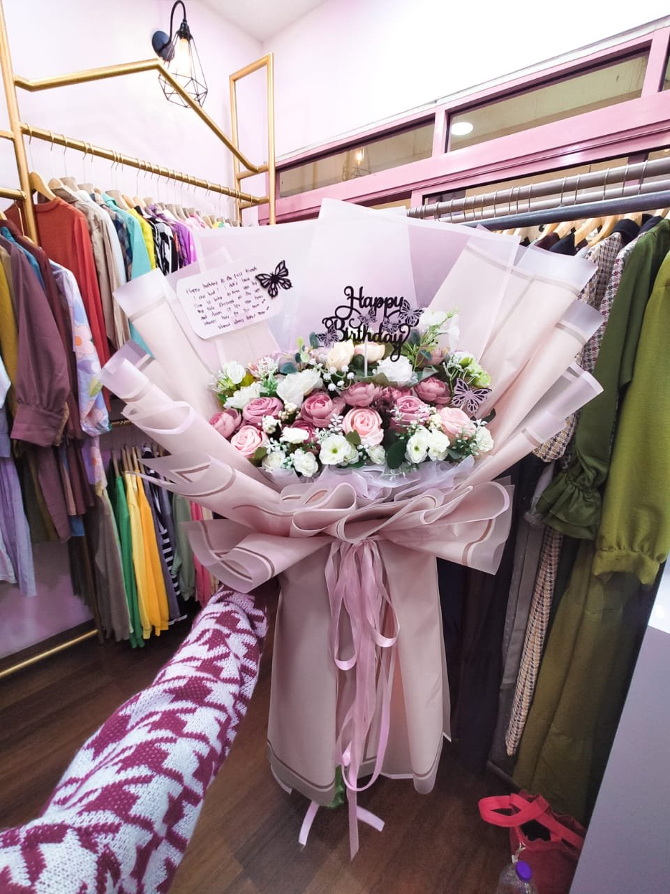 Untuk produk fashion ada produk Luar Negeri dan dalam negeri, sedangkan produk buketnya dibuat home made olehnya.