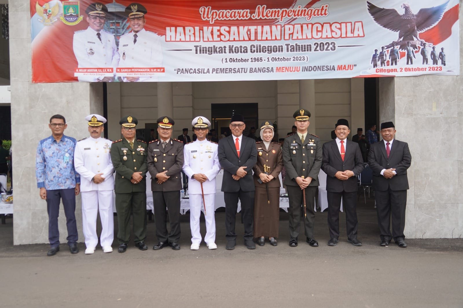 BISNISBANTEN.COM – Walikota Cilegon Helldy Agustian mengajak kepada seluruh Aparatur Sipil Negara (ASN) dan masyarakat untuk memahami nilai-nilai Pancasila. Hal itu merupakan langkah awal dalam mewujudkan Indonesia maju ditengah mempersiapkan generasi emas 2045. Demikian disampaikan Helldy saat menjadi Inspektur Upacara Peringatan Hari Kesaktian Pancasila Tingkat Kota Cilegon di Halaman Kantor Walikota Cilegon, Senin (2/10/2023).