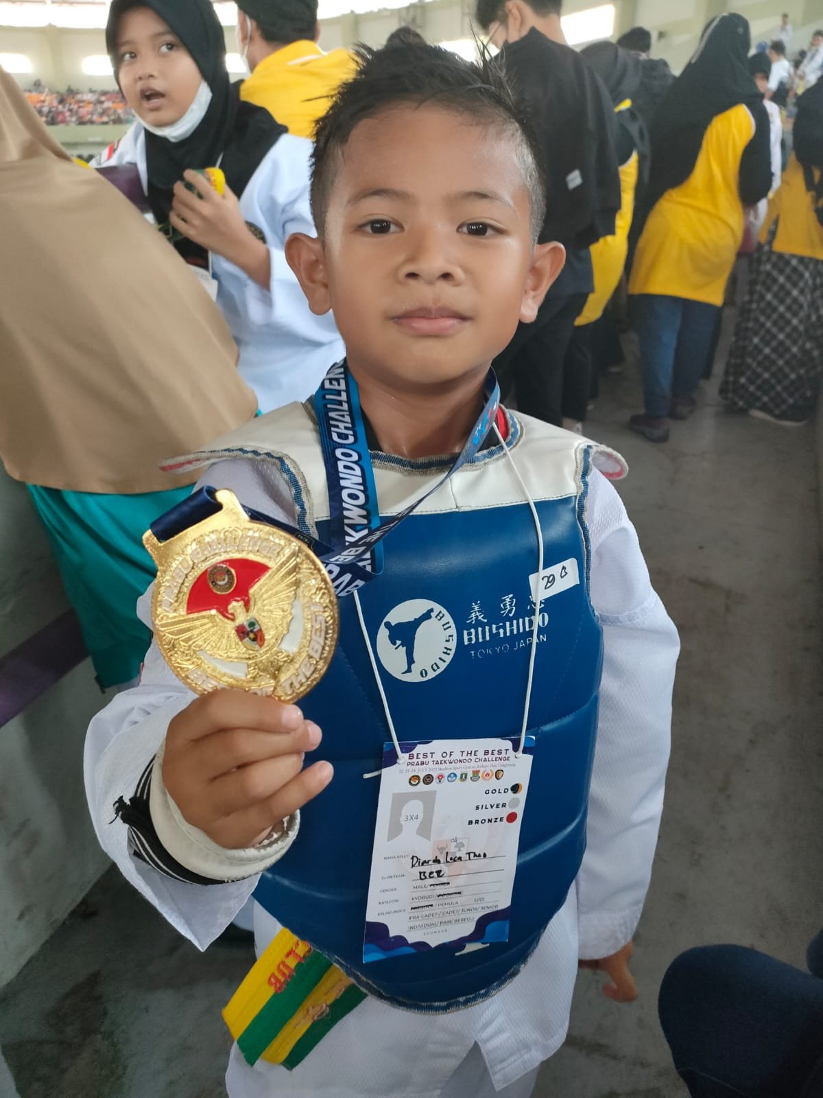 BISNISBANTEN.COM — Diardo Loca Theo, anak berusia 7 tahun berhasil meraih medali emas pada kejuaraan Prabu Taekwondo Challenge, tingkat nasional yang dilaksanakan di Indoor Stadium, Sport Center Kelapa Dua, Kabupaten Tangerang pada hari Minggu, 24 Juli 2022. Ini adalah kali ketiga diardo mendapatakan medali Emas dalam ajang Bergengsi Nasional.