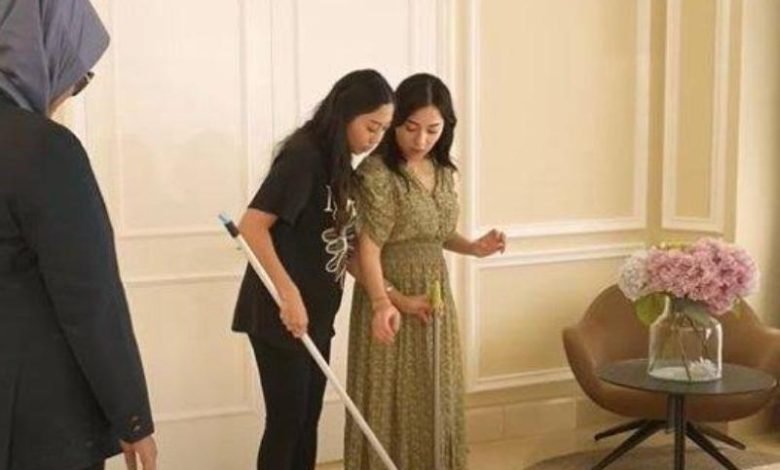 Nikita Willy juga merasa bingung dan tak tau bagaimana cara memegang sapu dengan benar. Akhirnya, wanita yang diduga adik dari Nikita Willy mengajarkan dan memperlihatkan cara memegang sapu pada umumnya.