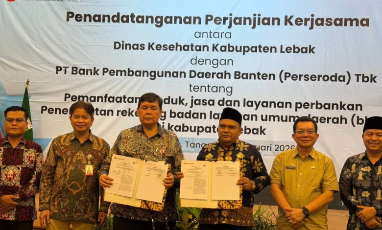 BISNISBANTEN.COM — Dinas Kesehatan Kabupaten Lebak resmi menjalin kerja sama dengan PT Bank Pembangunan Daerah Banten (Perseroda) Tbk terkait pemanfaatan produk, jasa, dan layanan perbankan untuk Badan Layanan Umum Daerah (BLUD). Kerja sama tersebut ditandai dengan penandatanganan perjanjian kerja sama yang digelar di Horison Ultima Ratu Kota Serang, Jum’at (6/2/2026).