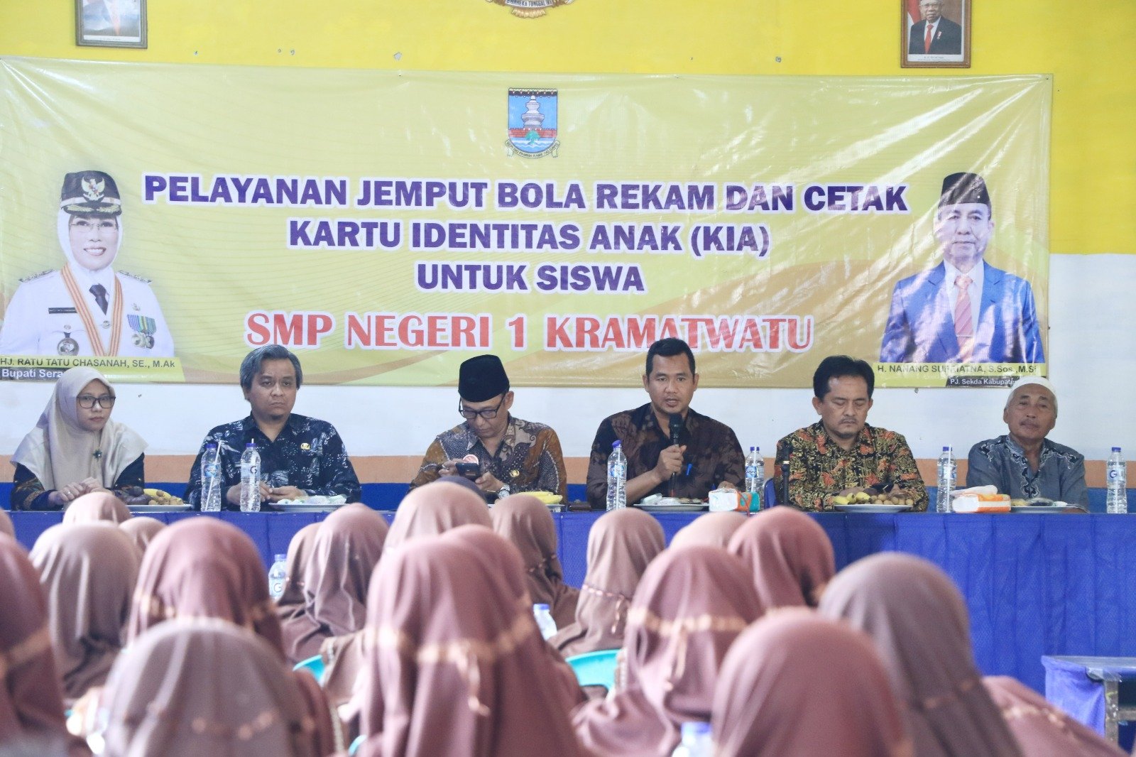 Kegiatan pembagian KIA diawali penandatanganan perjanjian kerjasama yang dilakukan Sekretaris Disdukcapil Kabupaten Serang Tubagus Maftuhi dan Kepala SMPN 1 Kramatwatu Dede Al Amron EM. Turut hadir Kabid SMP pada Dinas Pendidikan dan Kebudayaan (Disdikbud) Kabupaten Serang Eeng Kosasih, Kabid Pemanfaatan Data dan Inovasi Pelayanan (PDIP) pada Disdukcapil Kabupaten Serang Hani Finola, dan perwakilan dari Dinas Komunikasi Informatika Persandian dan Statistik (Diskominfosatik) Sugarda Bayu Aji.