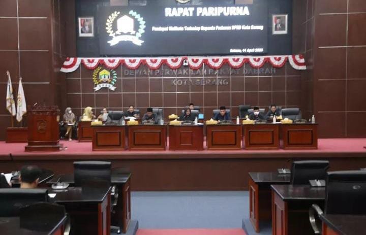 Itu terungkap pada Rapat Paripurna Pendapat Walikota Serang terhadap penyampaian Raperda Pengelolaan Air Limbah Domestik yang merupakan usulan DPRD Kota Serang di Gedung DPRD Kota Serang, Selasa (11/4/2023). Paripurna dipimpin Wakil Ketua I DPRD Kota Serang Ratu Ria Maryana, didampingi Wakil Ketua II DPRD Kota Serang Roni Alfanto, dan Wakil Ketua III DPRD Kota Serang Hasan Basri dan dihadiri Walikota Serang Syafrudin.