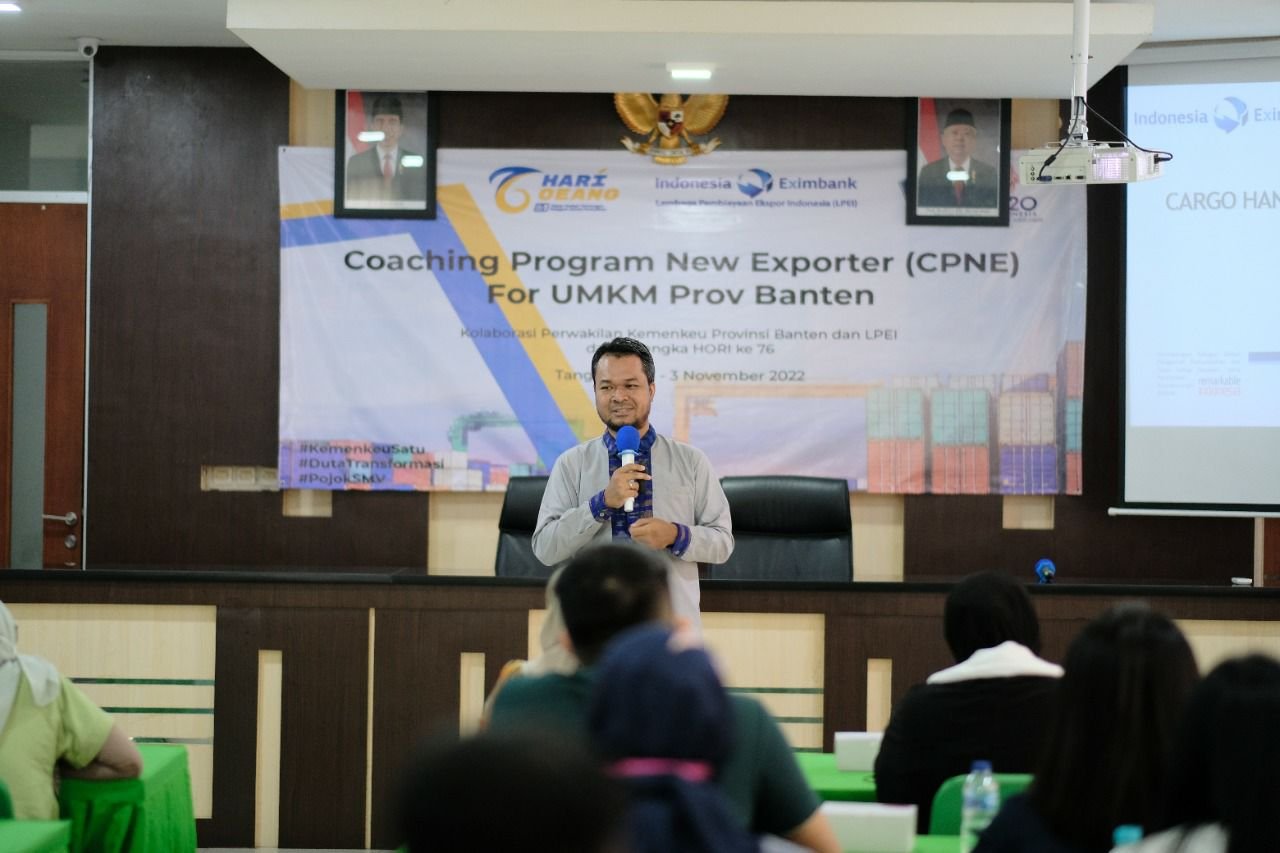 BISNISBANTEN.COM — Kanwil DJP Banten bekerja sama dengan Kanwil Direktorat Jenderal Bea dan Cukai (DJBC) Banten, Kanwil Direktorat Jenderal Kekayaan Negara (DJKN) Banten, Kanwil Direktorat Jenderal Perbendaharaan (DJPb) Negara Banten, Kantor Pelayanan Utama Bea dan Cukai (KPU-BC) Soekarno Hatta, dan Lembaga Penjaminan Export Impor (LPEI) Provinsi Banten menyelenggarakan pelatihan bagi pelaku Usaha Mikro Kecil dan Menengah (UMKM) agar siap ekspor dan mahir ekspor di aula Kanwil DJBC Banten dan aula KPKNL II Tangerang yang dilaksanakan selama dua hari (Rabu-Kamis, 2-3/11).