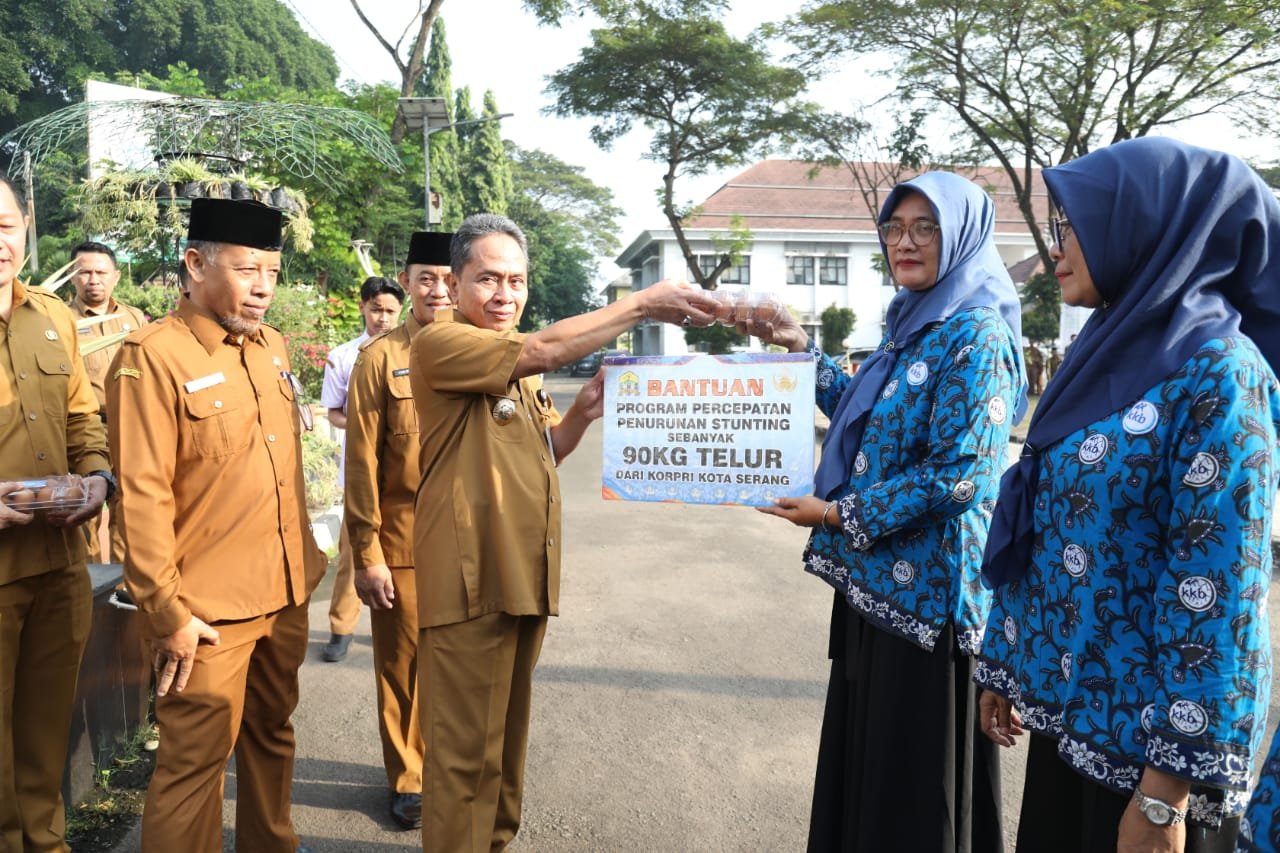 Penyaluran Bantuan telur tersebut diserahkan oleh Korpri Kota Serang kepada Pemkot Serang sebagai salah satu langkah penanganan stunting di Kota Serang.
