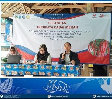 BISNISBANTEN.COM – Dalam rangka mendukung ketahanan pangan, Bank Indonesia Provinsi Banten berkolaborasi melakukan kegiatan sosialisasi pelatihan budidaya cabai merah dengan menggunakan teknologi produksi lipat ganda (PROLIGA).