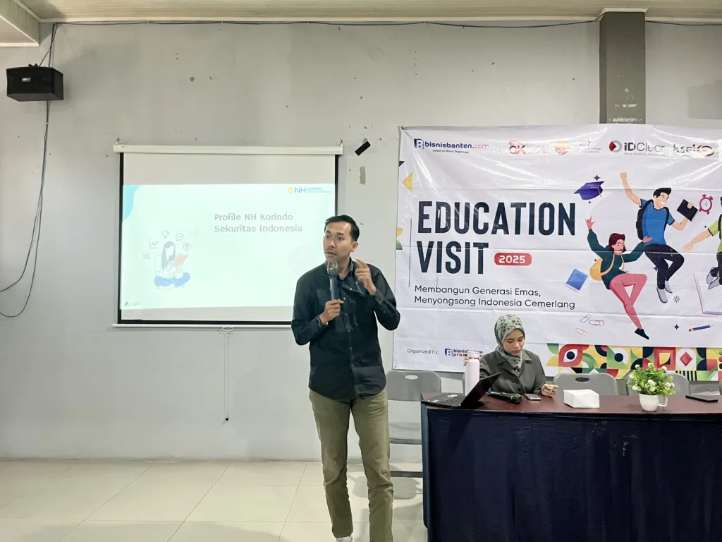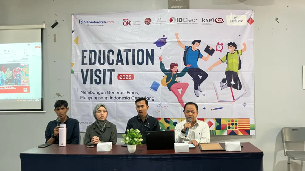 BISNISBANTEN.COM – Program roadshow edukasi bertajuk ‘Education Visit 2025’ yang diselenggarakan media online Bisnis Banten Grup bersama mitra kerja, yakni Bursa Efek Indonesia (BEI) Perwakilan Banten mengunjungi Universitas Faletehan Gedung C lantai 3, Jalan Raya Cilegon KM 06, Kecamatan Pelamunan, Kabupaten Serang, Rabu (23/7/2025). Program diikuti mahasiswa jurusan Manajemen, Fakultas Ekonomi dan Bisnis dari berbagai semester yang ingin memperkuat untuk ilmu pengetahuan tentang investasi atau jual beli saham melalui Pasar Modal.