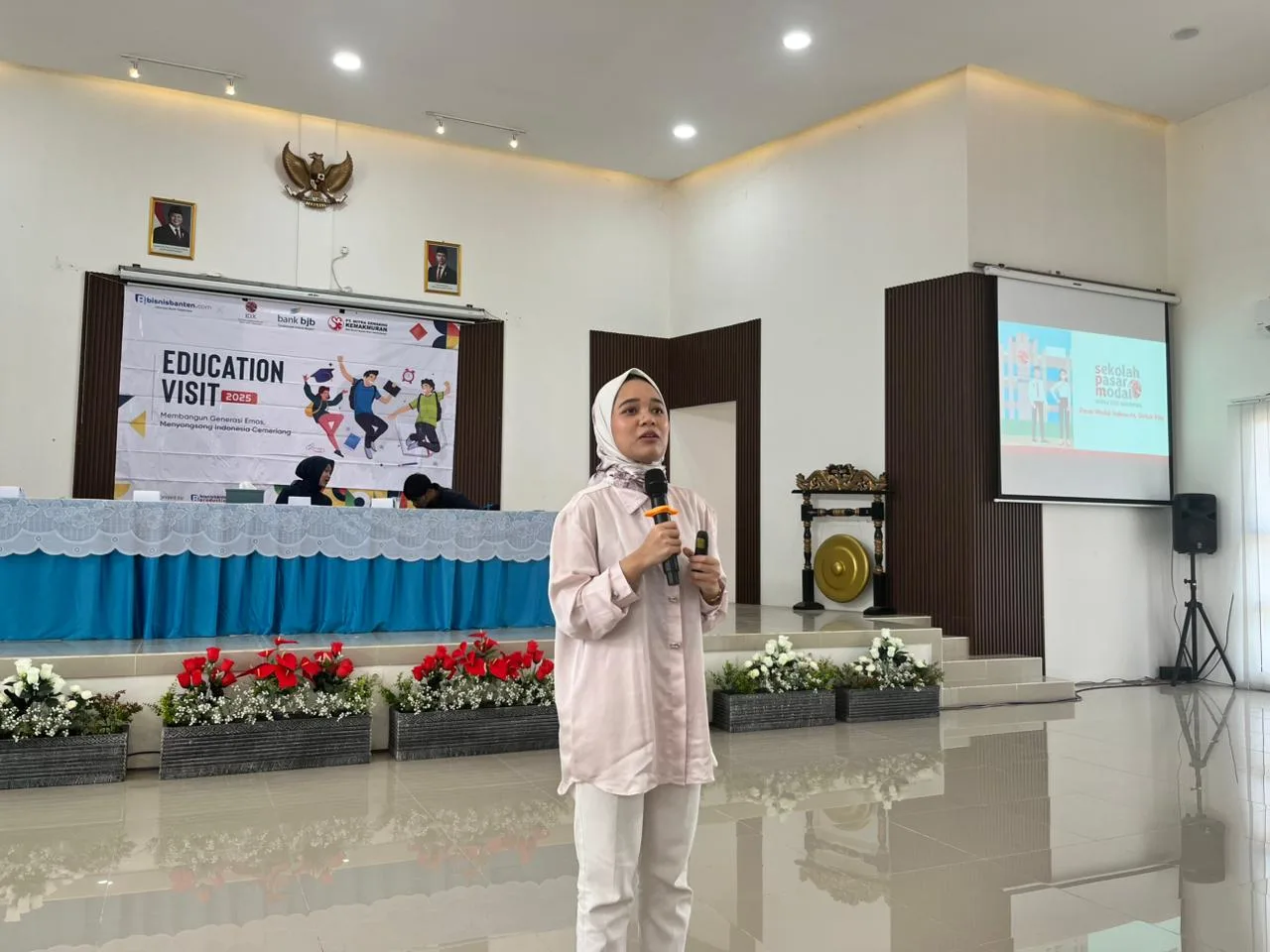 BISNISBANTEN.COM – Rangkaian kunjungan edukasi investasi dan saham yang dikemas dalam program Education Visit mengunjungi SMKN 4 Kota Serang pada Senin (8/9/2025). Seperti sekolah-sekolah lain, pada kegiatan yang diikuti sekitar 250 siswa berbagai jurusan ini Bursa Efek Indonesia Kota Serang Banten menyampaikan pentingnya berinvestasi bagi generasi muda.