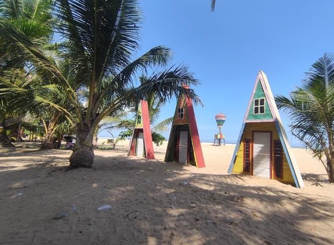 Seperti namanya Pantai Kelapa Warna, di Pantai ini banyak sekali pohon kelapa mengelilingi area pantai dengan dihiasi warna-warni pohon kelapa menambah aesthetic.