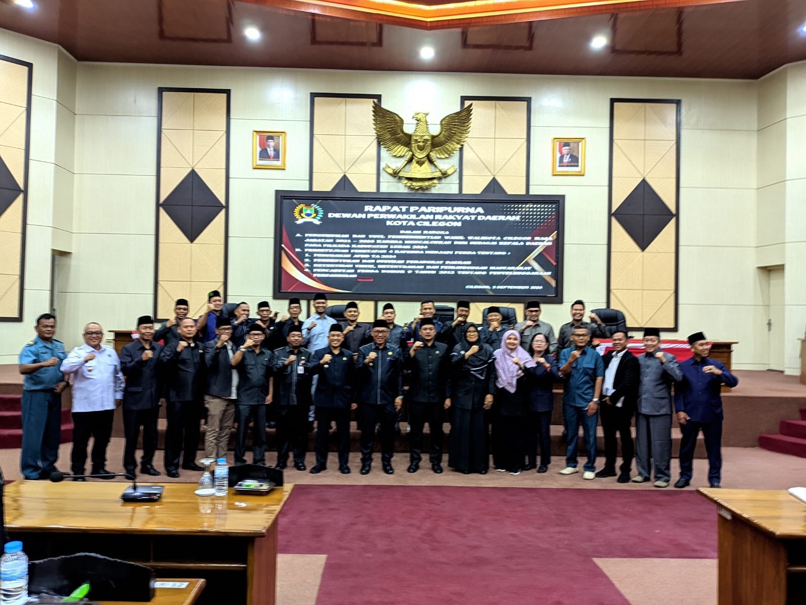 Rapat paripurna ini turut dihadiri oleh Wakil Wali Kota Cilegon Sanuji Pentamarta, Ketua DPRD Kota Cilegon Isro Miraj, Wakil Ketua II DPRD Kota Cilegon Nurrotul Uyun, Sekretaris Daerah Kota Cilegon Maman Mauludin, perwakilan unsur Forkopimda, Asisten Daerah I dan III Kota Cilegon, serta kepala Organisasi Perangkat Daerah (OPD) di lingkup Kota Cilegon.(dik).