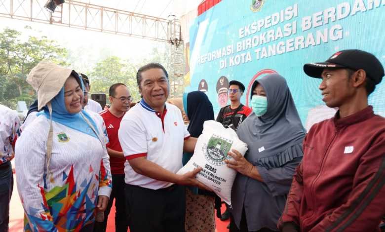 BISNISBANTEN.COM — Pemerintah Provinsi (Pemprov) Banten menggelar Gerakan Pangan Murah dalam kegiatan Ekspedisi Reformasi Birokrasi Tematik Berdampak di Kota Tangerang, pada rangkaian HUT ke-23 Provinsi Banten di Halaman Pusat Pemerintahan Kota Tangerang, Jl. Satria – Sudirman No.1 Kota Tangerang, Minggu (29/10/2023). Tujuannya, untuk pengendalian inflasi.