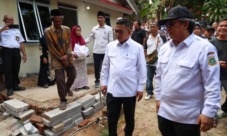BISNISBANTEN.COM — Gubernur Banten Andra Soni meninjau langsung progres pembangunan rumah milik pasangan lanjut usia, Saniti dan Juned, warga Kampung Pasir Ipis, Desa Kaduagung Barat, Kecamatan Cibadak, Kabupaten Lebak, Rabu (22/10/2025).