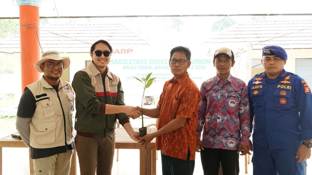 Sharp melakukan penanaman sebanyak 3.300 bibit pohon Mangrove berjenis Rhizopora Mucronata yang ditanam di sepanjang pesisir pulau Tunda. Jenis ini dipilih karena jenis ini dapat tumbuh di tanah yang keras dan berpasir sering ditemukan pada daerah pasang surut.