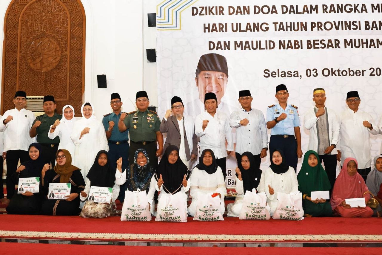 Selain itu, HUT ke-23 Provinsi Banten yang berdekatan dengan Hari Besar Islam Maulid Nabi Muhammad SAW memberikan pelajaran penting sebagai bekal pelaksanaan dalam setiap aktivitas. Al Muktabar menyampaikan, momen tersebut bisa diimplementasikan melalui kegiatan yang diniatkan sebagai langkah-langkah ibadah.
