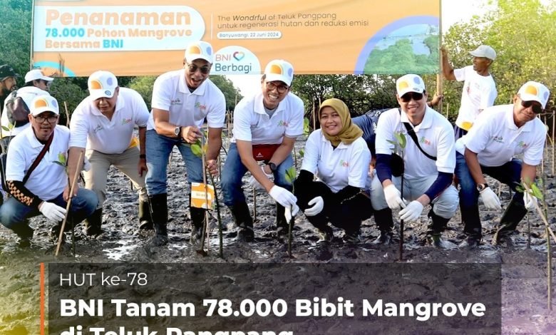 BISNISBANTEN.COM — PT Bank Negara Indonesia (Persero) Tbk atau BNI menyelenggarakan kegiatan menanam 78.000 bibit mangrove dalam rangka menyambut Hari Ulang Tahun (HUT) ke-78.