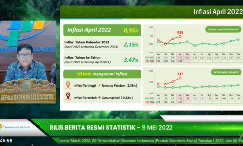 BISNISBANTEN.COM — Berdasarkan data Badan Pusat Statistik (BPS), Indeks Harga Konsumen (IHK) pada April 2022 mengalami inflasi sebesar 0,95% (mtm), setelah pada bulan sebelumnya tercatat inflasi sebesar 0,66% (mtm).
