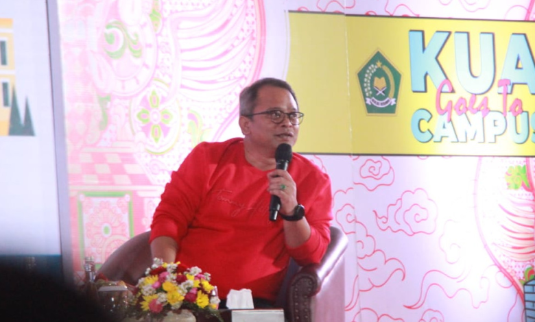 BISNISBANTEN.COM — Staf Khusus (Stafsus) Menteri Agama Bidang Media dan Komunikasi Publik, Wibowo Prasetyo, memaparkan empat pesan untuk remaja Indonesia dalam KUA Goes To Campus. Acara yang diinisiasi Ditjen Bimas Islam Kementerian Agama ini berlangsung di Magelang, Senin (5/2/2024).