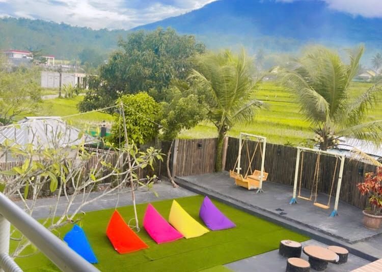 Selain itu, disini juga tersedia teras dan taman bermain anak-anak. Cocok banget untuk liburan keluarga dengan membawa si kecil.