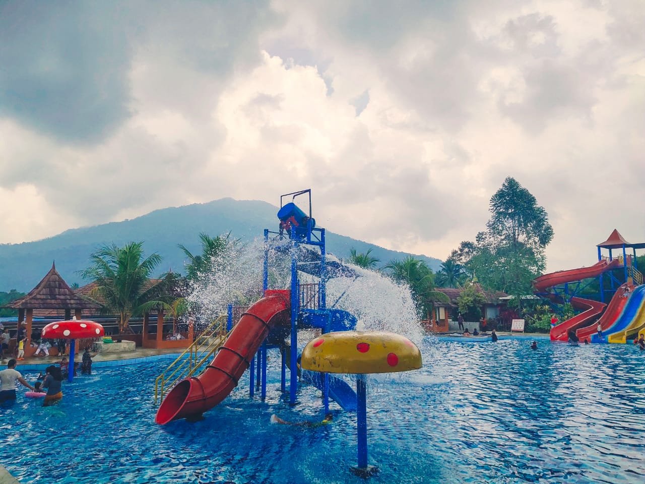 Air di kolam renangnya sangat jernih karena berasal langsung dari mata air pegunungan. Tentu terbayang segarnya saat berenang di sana.