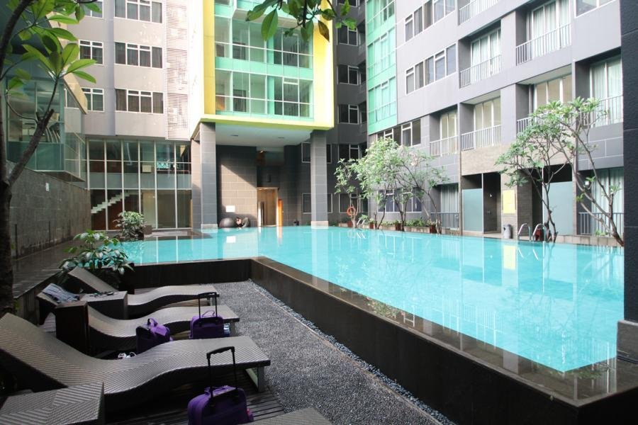 Berada di tengah lahan kosong hijau di utara Kali Cideng, area di sekitar apartemen masih dalam pembangunan. Tidak ada landmark menarik di sekitar apartemen, kecuali Epicentrum dalam radius 1 km dari apartemen.