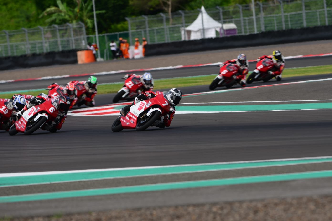BISNISBANTEN.COM — Veda Ega Pratama berhasil meraih podium tertinggi pada race pertama seri keenam di ajang Idemitsu Asia Talent Cup (IATC) 2022 yang digelar di Pertamina Mandalika International Street Circuit, Nusa Tenggara Barat – Indonesia, Sabtu (12/11). Bersama Veda, empat pebalap binaan PT Astra Honda Motor (AHM) lainnya turut menunjukkan semangat juang tinggi sebagai pebalap tuan rumah menghadapi 15 pebalap muda dari mancanegara.