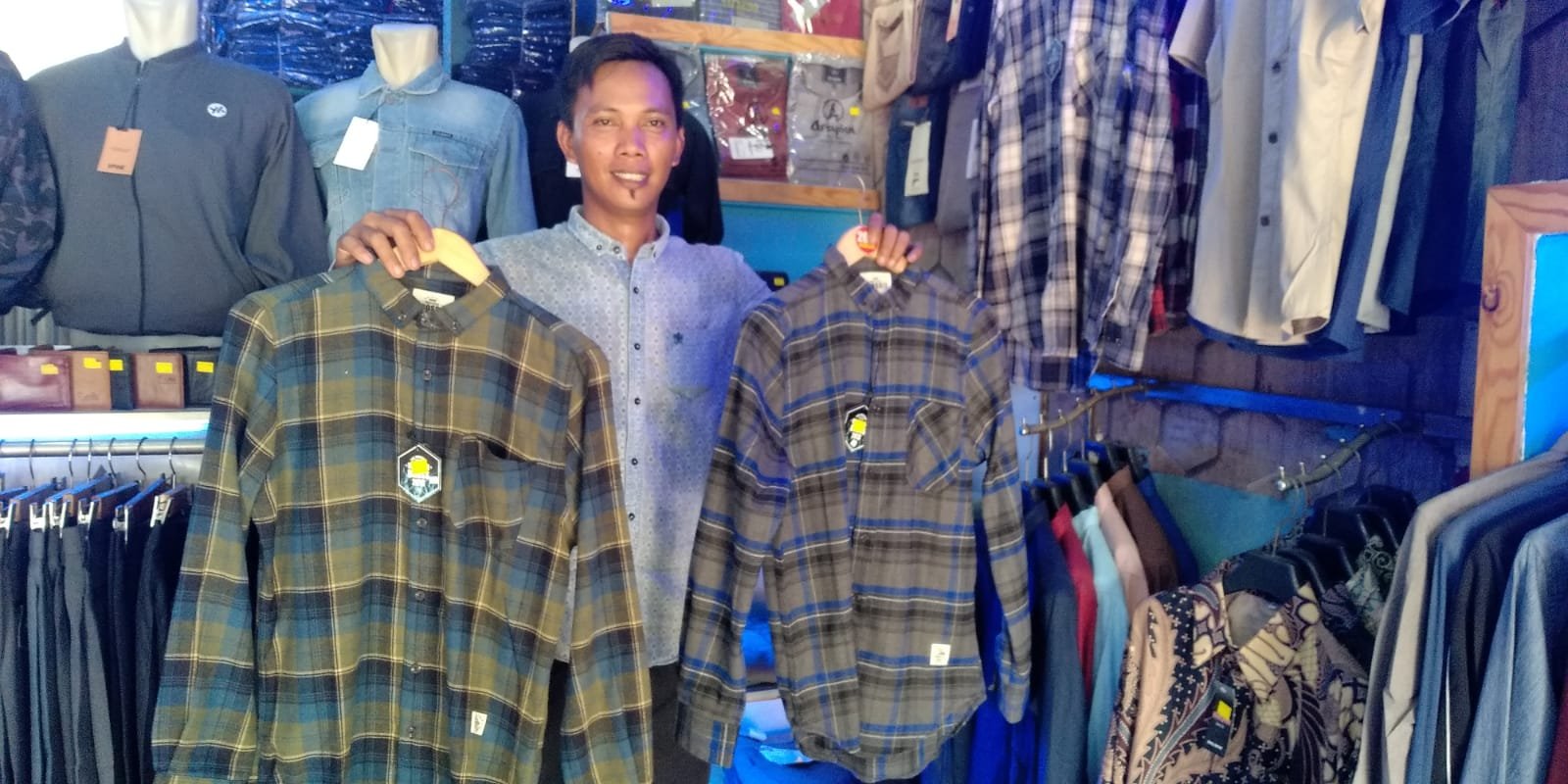 “Baju kemeja flannel ini buat cowok yang pengin tampil trendy dan pas untuk segala kegiatan. Harga di sini juga bersahabat,” ujar Ajis, Owner Distro Jeans Solution saat ditemui bisnisbanten.com di Distronya.